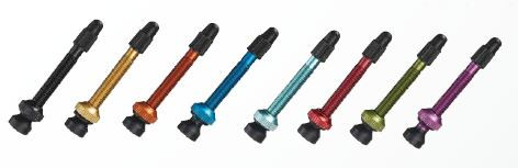 Bezdušový SV ventilek, délka 45 mm, modrý elox.Cena za pár.