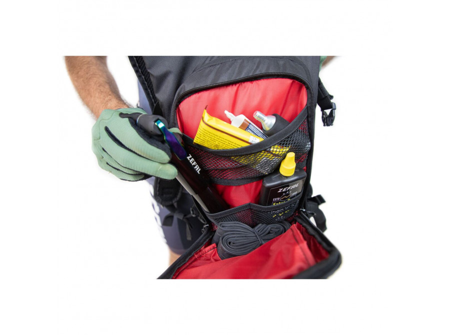 Tento velkokapacitní batoh je ideální pro přepravu veškerého vybavení potřebného pro jízdu na horském kole. Oddělené přihrádky umožňují uložit nářadí (pumpička, multifunkční nářadí, montpáky, duše atd.), osobní věci (smartphone, klíče) nebo jídlo. Jistě oceníte také modulární rozšiřitelnou síťku na oblečení a ochranné pomůcky a speciální systém upevnění přilby. Batoh je vybaven bederním pásem, hrudním popruhem a 3D pěnovými výztuhami, takže se přizpůsobí většině tvarů těla a nabízí dokonalou stabilitu i v náročném terénu.