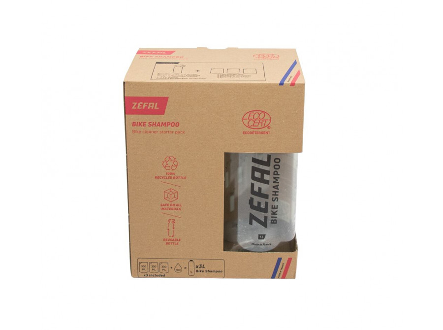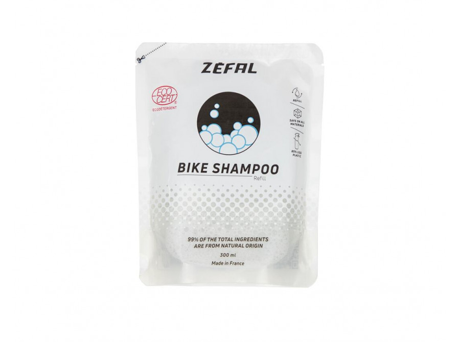 KONCENTROVANÝ ČISTICÍ PROSTŘEDEK S EKOCERTIFIKÁTEM OZNAČENÍ EKOLOGICKÉHO ČISTICÍHO PROSTŘEDKU Šampon na kola je přírodní čisticí prostředek (99 % všech složek je přírodního původu). Účinně odstraňuje nečistoty z vašeho kola a zároveň chrání jeho lak, povrch a choulostivá místa. Bez rizika koroze vaše kolo bude po jízdě zářivě čisté a beze zbytků. po každém mytí.Prospěšné pro kola i pro planetu, Bike šampon je certifikován organizací Ecocert. Tato značka zaručuje splnění velmi vysokých požadavků ekologických norem. Obsah ale i obal je šetrný k životnímu prostředí. Láhev je vyrobena ze 100% recyklovaného plastu, zatímco stříkací pistole je z 33 % vyrobena z recyklovaného plastu. Tato sada, která se skládá z postřikovače a tří náplní,vám poskytne 3 litry čisticího prostředku .Vlastnosti: Obsah: méně než 5 %: neiontové povrchově aktivní látky, amfoterní povrchově aktivní látky. Dále obsahuje: vodu, sekvestrant, uhličitanové soli. Všechny složky jsou z 99 % přírodního původu. 30 čištění: Průměrně 1 l přípravku vystačí na 10 čištění. Univerzální: Lze bezpečně použít na všechny povrchy vašeho kola. Rozprašovač: Jeho dvojí poloha umožňuje vytvářet aktivní mycí pěnu nebo stříkat na čištěné díly. Opakovaně použitelná láhev: Vyrobena z recyklovaného plastu a lze ji opakovaně používat s náplní Bike Shampoo Refill.