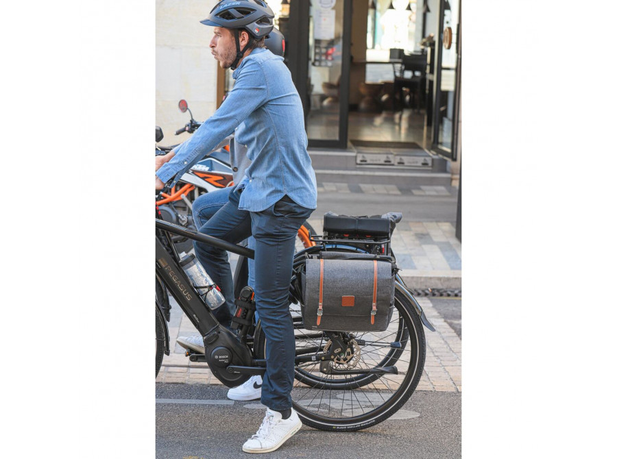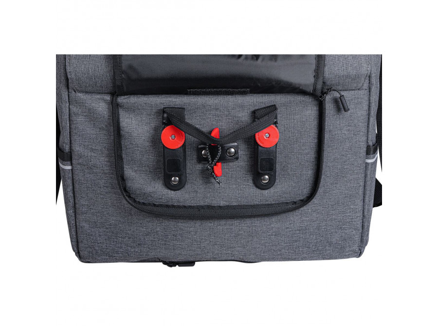 vám umožní převážet svůj notebook (15 palců) a také jiné předměty. Má jednoduchý a univerzální upevňovací systém pro montáž a přpravu na nosiči.Zip a magnetická zapínací tlačítka umožňují rychlý přístup do hlavní přihrádky (všimněte si, že kožené řemínky jsou pouze ozdobné a pod nimi jsou patentky). Vnější kapsa na přední straně a další vnitřní kapsa umožňuje uložení menších předmětů.Uvnitř tašky je popruh, který slouží pro skladování lahve s vodou. Na obou stranách tašky jsou do kterých lze schovat popruh přes rameno, když je taška namontována na nosiči.