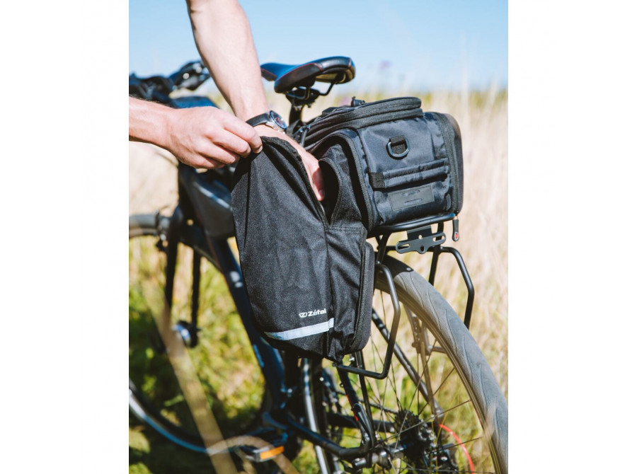 Voděodolná brašna s výklopnými zesílenými bočními kapsami.Pro všechny typy nosičů. upevnění pomocí suchých zipů. Objem 32 litrů.Ochranný potah do deště.