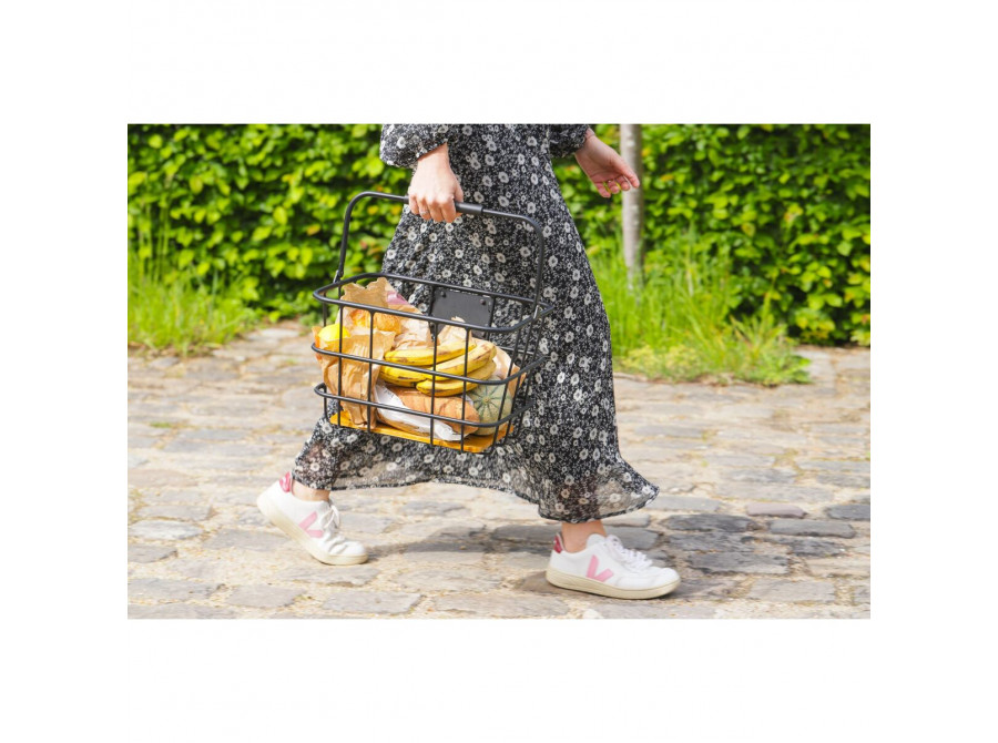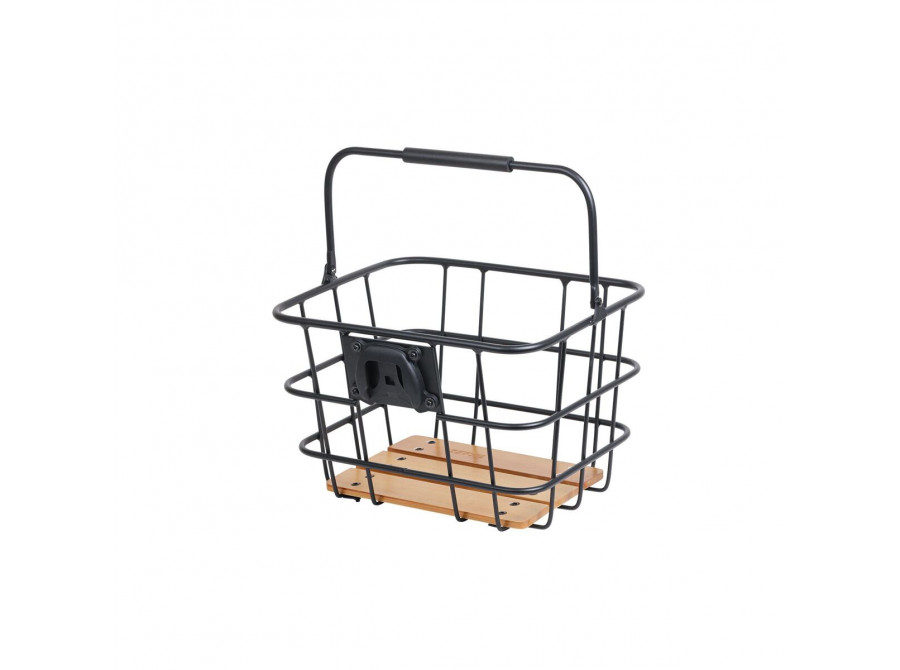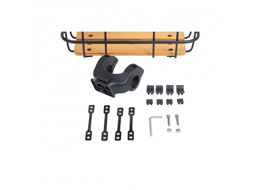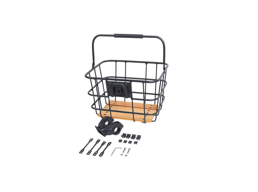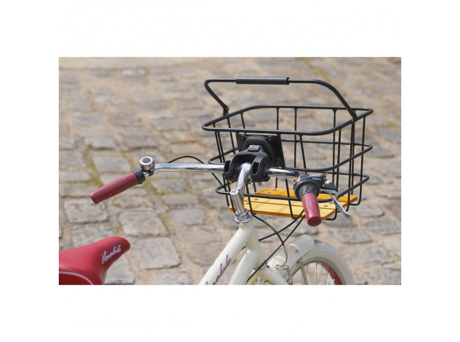 Koš na řidítka. Elegantní koš z hliníku a dřeva. Tento praktický košík je vyjímatelný a díky univerzálnímu upevňovacímu systému je to snadné.