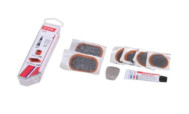 Lepení MTB obsahuje 6 záplat (4 x Ø 33 mm, 2 x 30*50 mm) / 1 lepidlo 5 g / 1 ocelovou škrabku