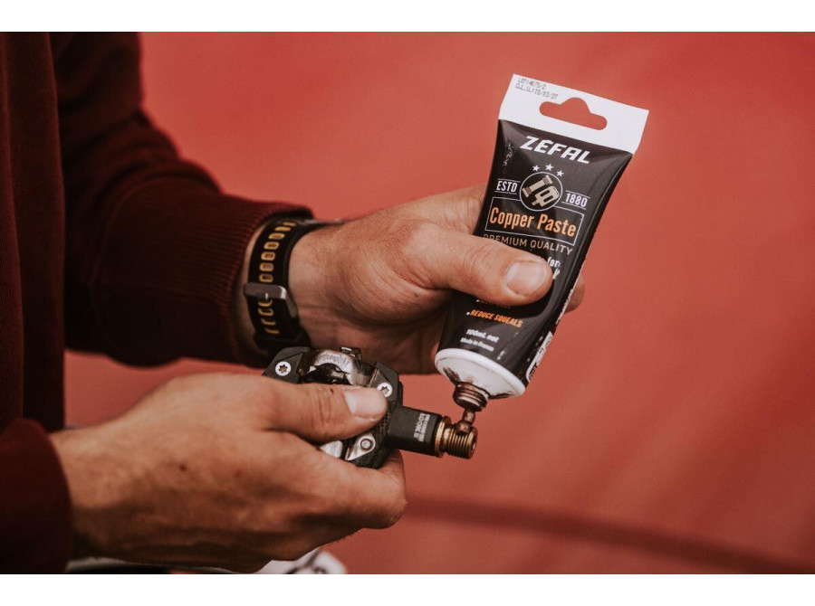 Montážní pasta na bázi mědi. Tato pasta umožňuje snadnou montáž / demontáž součástek (pedály,sedlovka atd.).