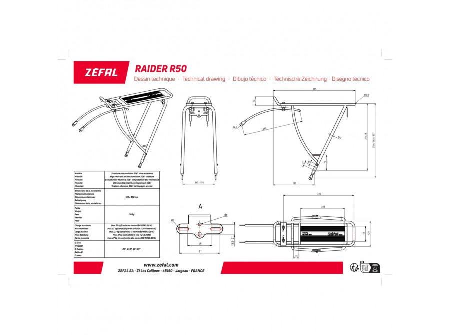 Univerzální zadní nosič pro 26", 27,5", 28" a 29" kola.Nosnost 25 kg.