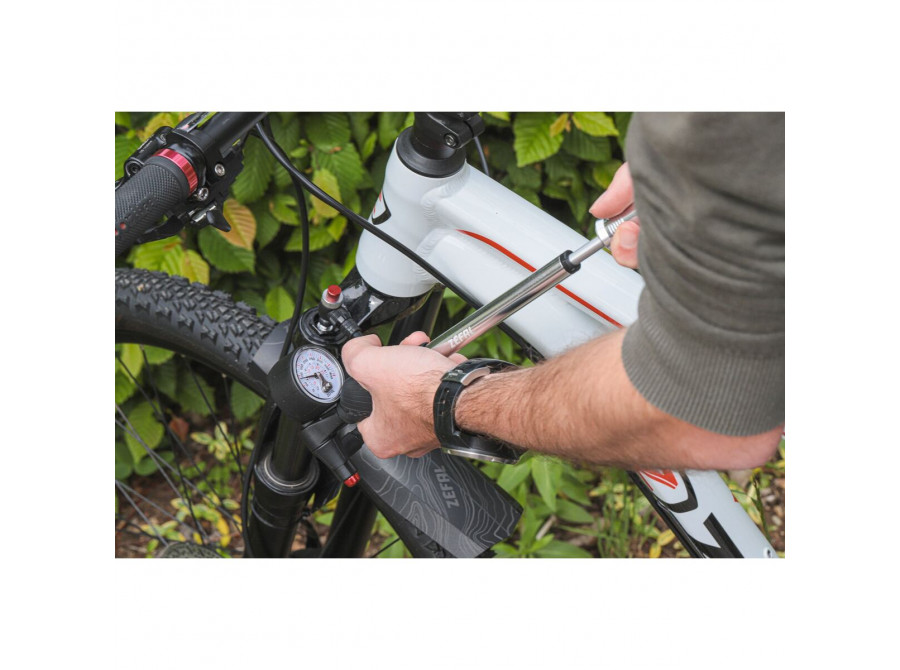 tlumiče. Integrovaný manometr umožňuje přesné a snadné čtení tlaku.Pumpa Z Shock je vyrobena z hliníku, díky kterému je lehká a odolná