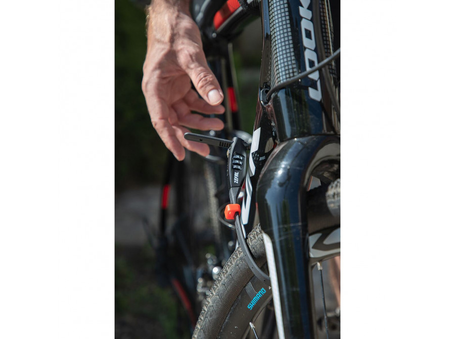 K-Traz Zip3 je samosvorná svorka s kódem.s ocelovou čepelí, která zajistí vaše kolo nebo příslušenství, jako je přilba nebo brašna.Ve městě,