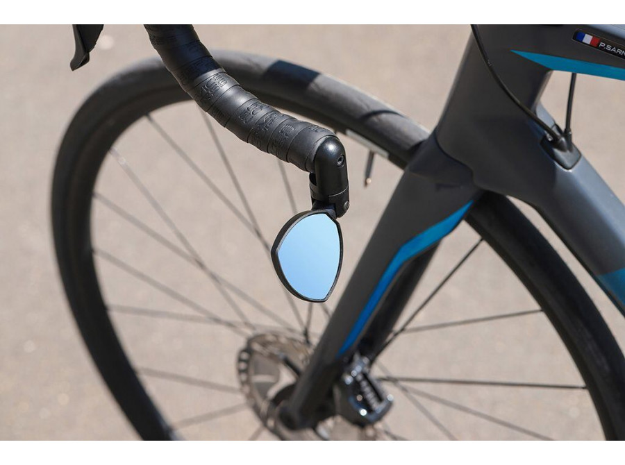 Zrcátko na řídítkách Spin 25 vyvinuté pro silniční kola je nastavitelné a sklopné. Diskrétní a malé konvexní zrcátko přesto nabízí široké zorné pole.